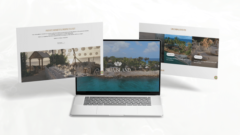 Bida Island: a private island, unlike any other beach on the coastline of Curacao. It’s a curated escape designed to offer something quieter and finer. As the beach prepared to welcome its first guests, our primary objective was to create a digital presence that introduces the concept. This was to be done by expressing the island’s unique identity and showcase its culinary vision, spa rituals, private celebration and event experiences. The goal was to design and develop a website that reflects the elegance and authenticity of the brand, and guide visitors smoothly from inspiration to reservation.